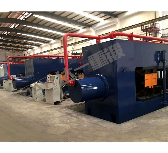 汽車車橋擠壓生產(chǎn)線是我公司針對(duì)掛車車橋生產(chǎn)工藝自主開(kāi)發(fā)的新型設(shè)備,具有自主知識(shí)產(chǎn)權(quán)。該生產(chǎn)線包含中頻加熱爐、送料機(jī)械手、車橋擠壓機(jī)等部分,將原車橋摩擦焊接、單邊旋壓等工藝替換為雙頭熱擠壓工藝,可一次性擠壓出高質(zhì)量車軸,有效地提高了生產(chǎn)效率、降低了生產(chǎn)能耗。